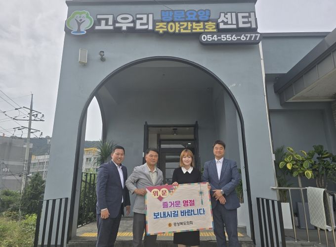 (포탈뉴스통신) 경상북도의회는 추석 명절을 맞아 경북도의원 및 의회사무처 직원이 각 일정별로 관내 구호·자선기관을 찾아 명절의 따뜻한 정을 나눴다. 24일은 경상북도의회를 대표해 김창기 도의원이 문경시 소재 고우리 주간보호센터를 찾아 경북도의회에서 준비한 위문품을 전달하고 관계자들을 격려했다.