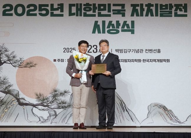 ‘대한민국 자치발전 대상’은 행정안전부산하 비영리법인 (사)한국자치발전연구원이 지방자치 발전에 기여한 국회의원, 지방자치단체, 지방의회의원, 공무원 및 민간인을 선정해 수여하는 권위 있는 상이다.