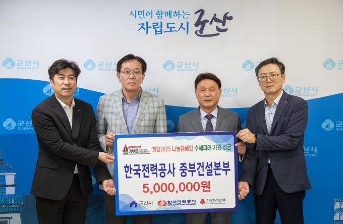 (포탈뉴스통신) 한국가스공사 전북지역본부(본부장 조강철)는 24일, 최근 집중호우로 피해를 입은 군산시 저소득 주민들을 위해 성금 1천만 원을 군산시에 기탁했다.