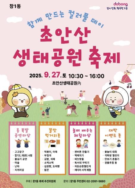(포탈뉴스통신) 서울 도봉구 창1동이 9월 27일 초안산 생태공원에서 '함께 만드는 컬러풀 데이 초안산 생태공원 축제'를 개최한다.