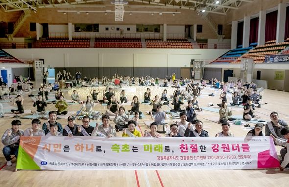 참가자 전원에게 ▲마사지볼 ▲속초 특산품인 티각태각 ▲요가 양말 ▲조명 장미꽃 ▲임산부와 미취학아동을 위한 짐볼 등을 선물로 제공해 만족도를 더욱 높였다.