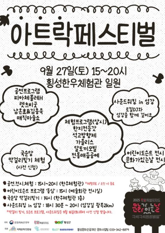아트락페스티벌과 관련된 자세한 사항은 횡성문화관광재단 누리집에서 확인할 수 있다.