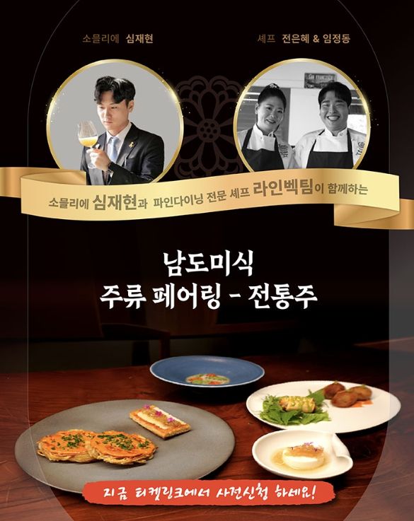 회당 100명 규모로 마련된 이번 프로그램은 고흥 유자주, 강진 코리안 화이트, 목포 밀물탁주, 담양 추성주, 나주 나과 등 지역을 대표하는 전통주를 엄선해 남도의 7가지 다양한 요리와 짝지어 선보인다.