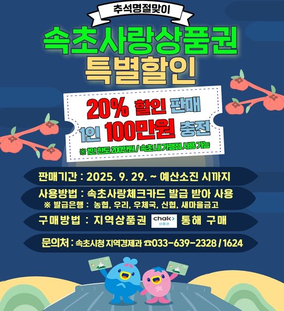 (포탈뉴스통신) 속초시가 추석 명절을 맞아 지역경제 활력 제고와 시민들의 장보기 부담을 덜기 위해 총 46억 원 규모의 ‘속초사랑상품권’을 발행한다.