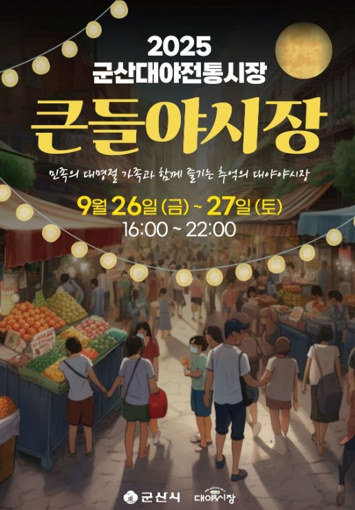 (포탈뉴스통신) 군산시가 오는 26일부터 27일 이틀간 대야전통시장 주차장에서 ‘큰들야시장’을 개최한다.