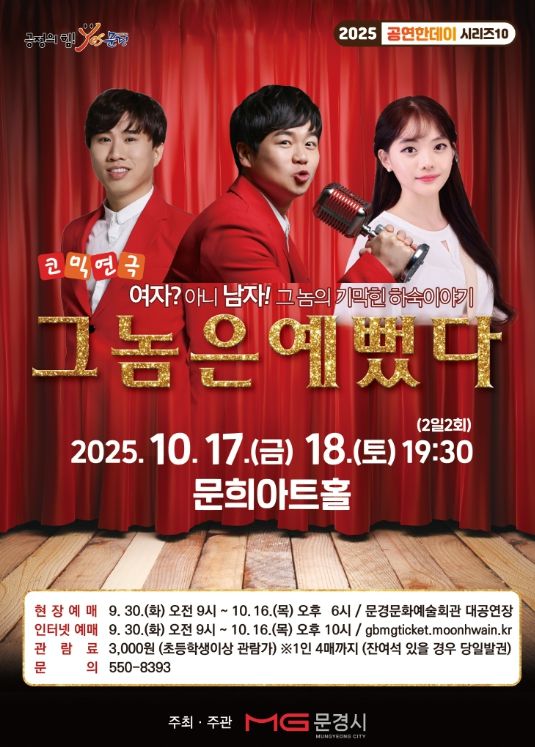 (포탈뉴스통신) 문경문화예술회관에서는 KBS, MBC 공채출신 개그맨들이 펼치는 연극‘그놈은 예뻤다’공연을 10월 17일 19:30, 18 19:30 (2일2회) 문희아트홀에서 상연한다.