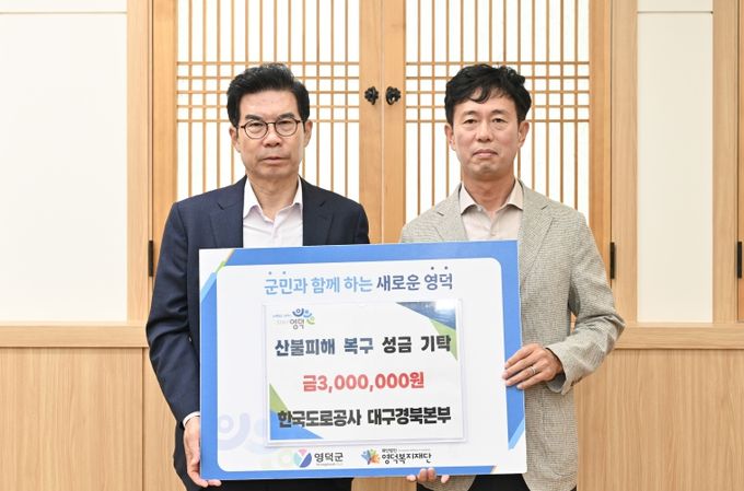 (포탈뉴스통신) 한국도로공사 대구경북본부는 지난 24일 김광열 영덕군수를 만나 산불로 큰 피해를 본 주민들을 돕기 위해 성금 300만 원을 기탁했다.