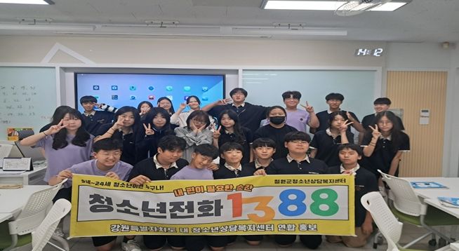 (포탈뉴스통신) 철원군청소년상담복지센터(센터장 신민호)는 청소년상담전화 1388에 대한 인식을 제고하고 도내 청소년안전망을 강화하기 위해, 9월 24일 강원특별자치도 내 13개 청소년상담복지센터와 함께 연합 홍보를 실시했다.