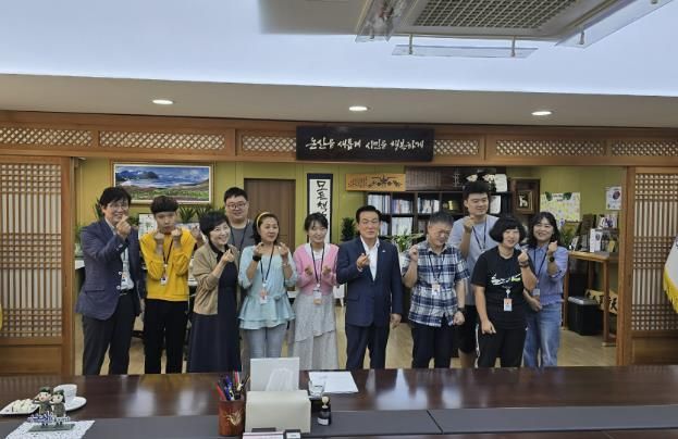 (포탈뉴스통신) 논산시는 23일 관내 직업재활 시설인 ‘논산발그래일터’ 하주현 이사장과 종사자, 소중한사람들 근로자 7명을 초청해 소통의 자리를 마련했다.