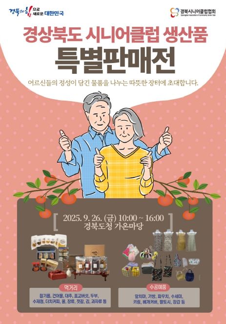 김호섭 경상북도 복지건강국장은 “어르신들의 땀과 정성이 담긴 생산품을 도민과 함께 나눌 수 있어 뜻깊다”며, “경북도는 앞으로도 어르신들이 활발히 사회에 참여하고 안정적인 생활 기반을 마련할 수 있도록 지속적인 지원을 이어가겠다”고 밝혔다.