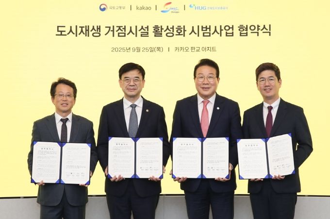 (포탈뉴스통신) 부산 동구는9월 25일 오후 카카오 판교아지트(경기 성남시 소재)에서 국토교통부, 카카오, 주택도시보증공사(HUG)와 ‘도시재생 공동이용시설 활성화 시범사업 업무협약(MOU)’을 체결했다.