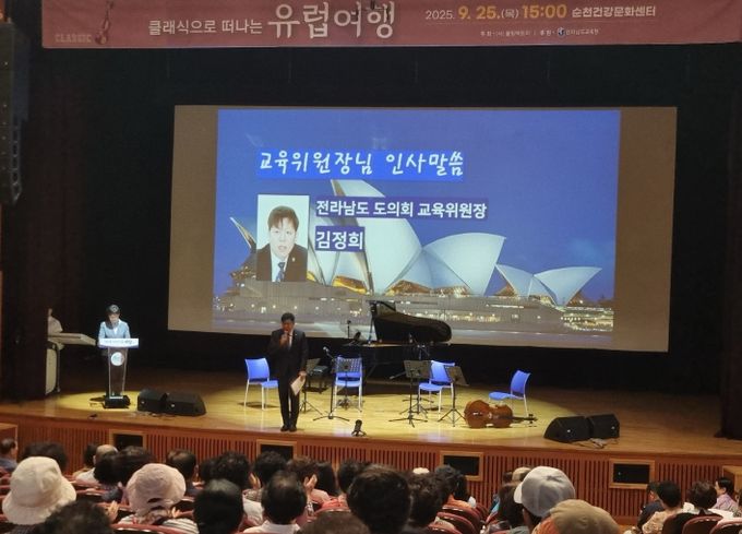 (포탈뉴스통신) 김정희 전라남도의회 교육위원장은 9월 25일, 순천건강문화센터에서 열린 ‘클래식으로 떠나는 유럽 예술 여행’ 행사에서 축사를 통해 청소년과 시민들에게 따뜻한 격려와 희망의 메시지를 전했다.