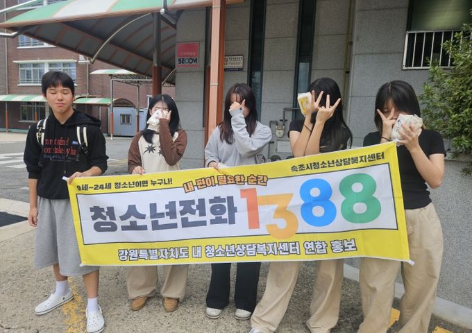 (포탈뉴스통신) 속초시시설관리공단(이사장 김태균) 청소년상담복지센터는 청소년전화 1388에 대한 인식을 높이고 도내 청소년 안전망 강화를 위해 9월 24일부터 강원특별자치도 내 13개 청소년상담복지센터와 함께 연합 홍보 캠페인을 진행한다.