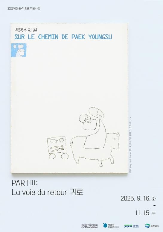 (포탈뉴스통신) 의정부시는 의정부 최초 등록 사립미술관인 백영수미술관에서 올해 세 번째 기획전인 ‘백영수의 길 Part Ⅲ: La voie du retour 귀로’ 전을 11월 15일까지 개최한다고 밝혔다.