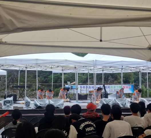 (포탈뉴스통신) 영동소방서 황간여성의용소방대(대장 이순진) 119수호천사는 지난 25일 황간면 월류봉 축제 행사장에서 심폐소생술 시연 활동을 펼쳤다.
