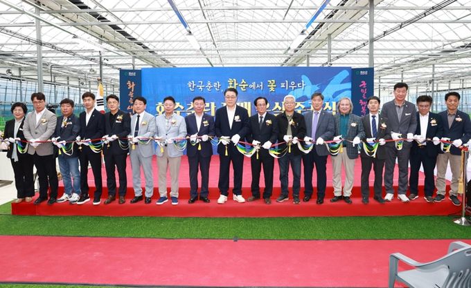 경과보고와 축사 이후 진행된 테이프 커팅식은 뜨거운 환호와 갈채 속에 진행됐으며, 전국 최대 규모로 신축한 화순춘란 재배 온실의 성공적인 출발을 알렸다.