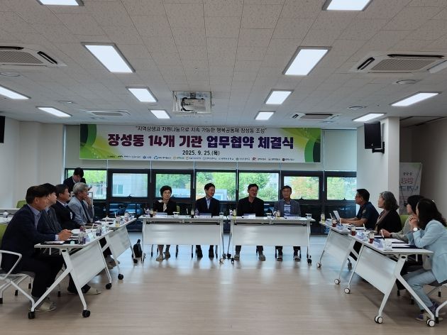 (포탈뉴스통신) 태백시시설관리공단은 지난 9월 25일 오전 11시, 장성동 생활SOC복합커뮤니티센터 2층에서 장성동 관내 14개 기관이 참여한 지역 상생과 자원 나눔을 위한 대규모 업무협약을 체결했다고 밝혔다. 장성동 소재 공공기관, 금융기관, 교육기관이 모두 참여해 지역 내 주요 기관 전체가 뜻을 모은 이례적인 사례라는 점에서 주목된다.