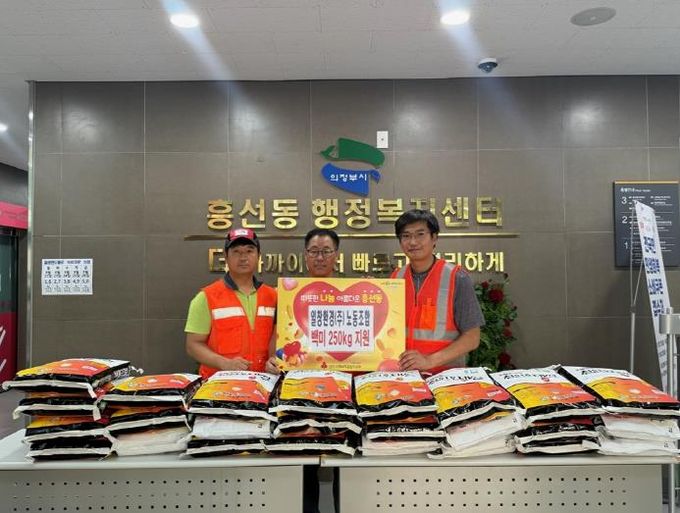 (포탈뉴스통신) 의정부시 흥선동행정복지센터는 9월 26일 일창환경(주) 노동조합이 추석을 맞아 백미 25포(10kg 단위)를 기탁했다고 밝혔다.