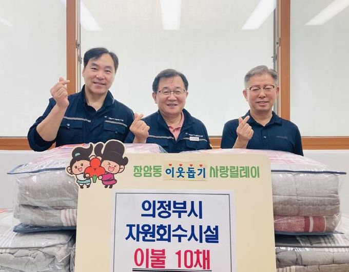 (포탈뉴스통신) 의정부시 장암동주민센터는 9월 26일 의정부시 자원회수시설이 추석 명절을 맞아 어려운 이웃을 위한 이불 10채를 기탁했다고 밝혔다.