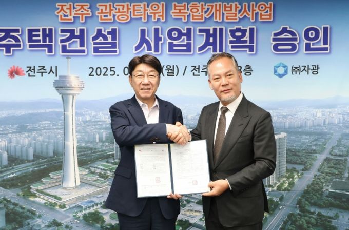 이에 전은수 ㈜자광 대표이사는 주택건설사업계획승인을 받기까지 적극 협력해 준 전북특별자치도와 전주시, 전주시민들에게 깊은 감사를 표하고, 향후 추진될 개발사업이 전주· 발전과 시민들의 삶의 질 향상, 지역경제 활성화로 이어지도록 약속 이행에 적극 나설 것을 약속했다.