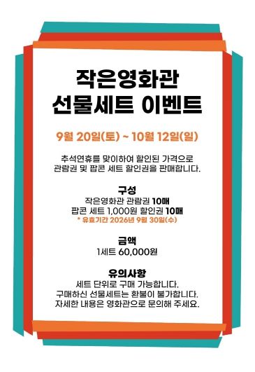 (포탈뉴스통신) 성주별고을시네마(창의문화센터 3층)는 민족 대명절 추석을 맞아 9월 20일부터 10월 12일까지 ‘추석맞이 선물세트 이벤트’를 진행한다.