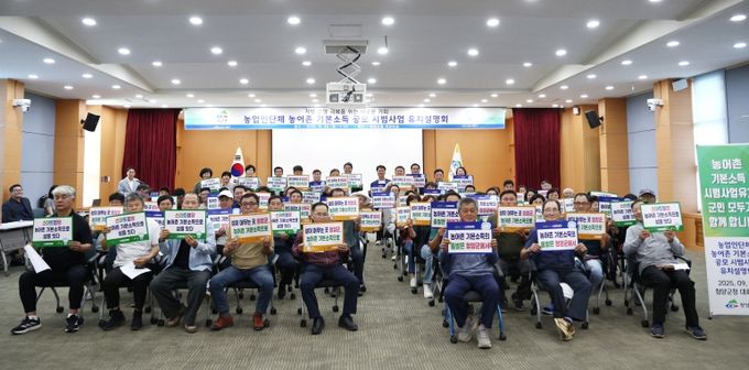 군은 29일 오후 1시 군청 대회의실에서 19개의 농업인 단체 회장 및 임원진 등 80여 명을 대상으로 농어촌 기본소득 시범사업에 대한 설명회를 개최했다. 이번 설명회에서는 사업에 대한 공감대를 형성하고, 군민들의 적극적인 지지를 이끌어 내기 위한 결의대회도 함께 진행됐다.