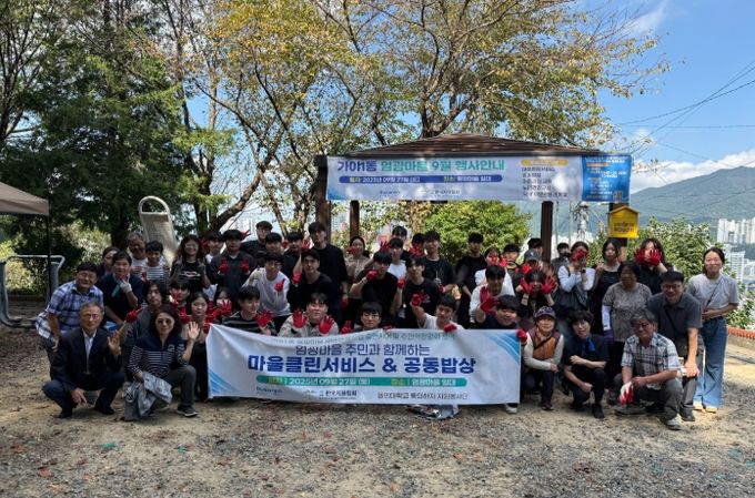 이날 주민과 자원봉사동아리 동의하자팀 70여 명이 참여한 가운데 엄광마을 곳곳의 쓰레기 무단투기를 수거하고 동의하자팀은 옹벽과 담벽의 재해 위험이 있는 나무와 잡풀, 덩굴 등을 제거해 마을 환경정비 솔선했다.