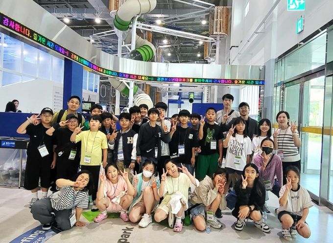 9월 27일에 열린 2차 캠프는 김천 녹색미래과학관에서 ‘녹색 지구를 위한 공감 리더십’을 주제로 진행됐으며, 태양광 우주인 만들기, 4D 영상 관람, 전시관 투어 등 다양한 융합과학 프로그램이 운영됐다. 이어서 청소년 테마파크에서는 스파이럴 슬라이드, 옵스타클 메이즈, 펀 클라임 등 신체활동 중심의 체험을 통해 학생들은 도전 정신과 협동심, 체력을 함께 기를 수 있는 시간을 가졌다.