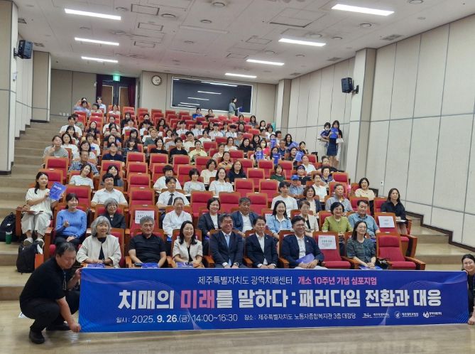 (포탈뉴스통신) 제주특별자치도광역치매센터(센터장 박준혁)는 지난 9월 26일 제주특별자치도 노동자종합복지관 3층 대강당에서 개소 10주년 기념 치매관리 심포지엄을 개최했다. 이번 심포지엄은 지난 10년간의 치매관리 성과를 공유하고, 급격히 변화하는 치매 진단·치료 기술과 돌봄 패러다임을 점검하며, 지역사회 중심의 새로운 대응 전략을 모색하는 것을 목표로 했다.