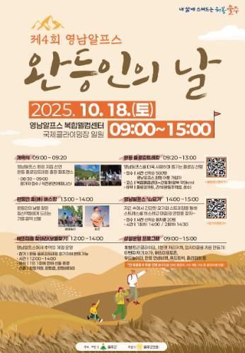 (포탈뉴스통신) 울산 울주군이 10월 18일 영남알프스 복합웰컴센터에서 ‘제4회 영남알프스 완등인의 날’ 행사를 개최한다고 30일 밝혔다.