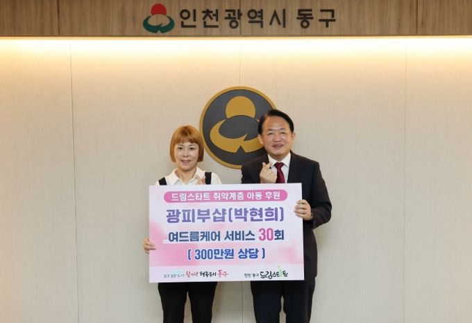 (포탈뉴스통신) 인천 동구와‘광피부샵’(대표 박현희)은 지난 29일 구청 접견실에서 관내 드림스타트 아동을 위해 300만원 상당의 여드름 케어 서비스를 후원하는 기탁식 열었다고 밝혔다.