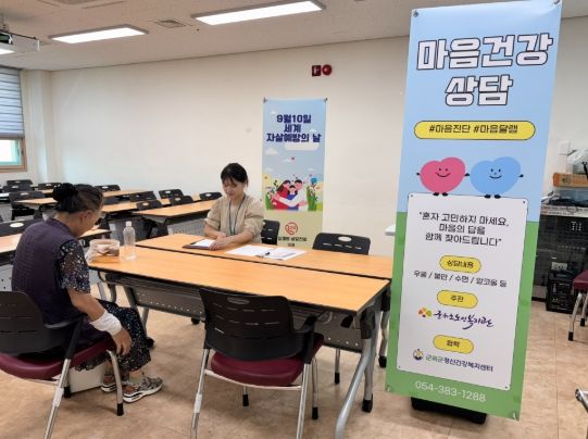 또한 ▲8일 군위재래시장 ▲10일 군위군청 ▲11일 군위노인복지관 ▲12일 군위역 ▲22일 부계중학교·군위재가노인돌봄센터 ▲24일 효령중학교 ▲30일 의흥전통시장 등에서 심리검진, 자살예방 OX퀴즈, 가두캠페인 등을 진행했다.