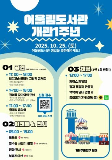 (포탈뉴스통신) 남원어울림도서관 개관 1주년을 맞아 오는 10월 25일(토) 9시부터 도서관 내·외부에서 시민과 함께하는 행사를 개최한다.
