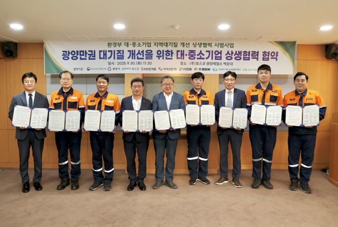 (포탈뉴스통신) 광양시와 영산강유역환경청은 9월 30일 국내 최대 철강업체인 ㈜포스코 광양제철소와 협력업체 4개사가 광양만권 지역 대기질 개선을 위해 ‘광양만권 대․중․소기업 지역 대기질 개선 상생협력 협약’을 체결했다고 밝혔다.