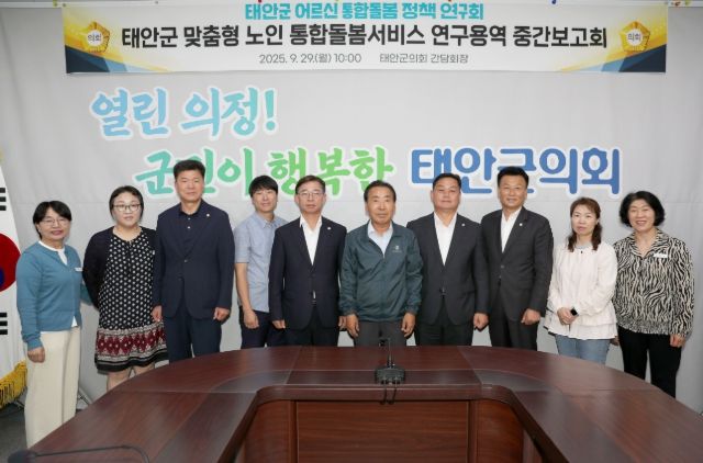 (포탈뉴스통신) 태안군의회 의원연구단체 ‘태안군 어르신 통합돌봄 정책 연구회’는 9월 29일 오전 10시, 태안군의회 간담회장에서 '태안군 맞춤형 노인 통합돌봄서비스 정책 연구' 중간보고회를 개최했다.