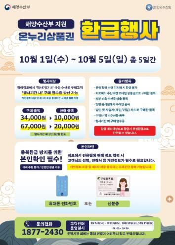 1인당 환급 한도는 농축산물 최대 2만원, 수산물 최대 2만원이다.