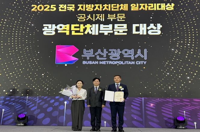 (포탈뉴스통신) 부산시는 오늘(30일) 오후 2시 청주오스코에서 열린 '2025 전국 지방자치단체 일자리대상' 시상식에서 '공시제 부문' 광역단체 대상(국무총리상)과 '우수사업 부문' 우수상(장관상)을 각각 수상했다고 밝혔다.