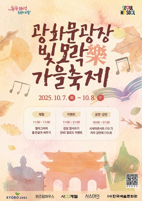 서울시는 10월 7일~8일 이틀간 ‘2025 광화문광장 빛모락 가을축제’를 개최한다고 밝혔다.