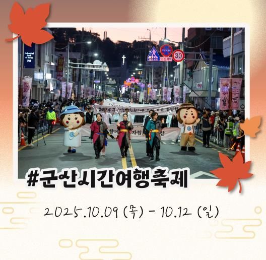 군산시간여행마을 일원에서 개최되는 제13회 군산시간여행축제는 ‘군산의 진짜 시간여행’을 주제로, 1899년 개항기부터 2050년 미래까지 150여 년의 군산 이야기를 한자리에서 경험할 수 있다.