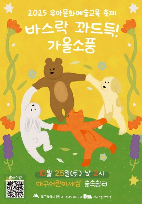 (포탈뉴스통신) (재)대구문화예술진흥원과 대구어린이세상은 10월 25일, 대구어린이세상 숲속쉼터에서 유아문화예술교육 가족 친화형 축제 ‘바스락 꽈드득! 가을소풍’을 개최한다.