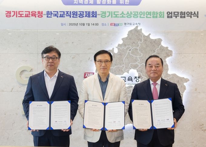 (포탈뉴스통신) 경기도교육청이 1일 남부청사에서 경기도소상공인연합회, 한국교직원공제회와 ‘지역경제 활성화를 위한 상생 업무협약’을 체결했다.