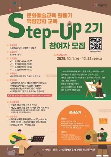 (포탈뉴스통신) (재)구미문화재단은 문화예술교육 활동가 역량강화 교육 프로그램 'Step-Up' 2기 참여자를 오는 10월 1일부터 22일까지 모집한다고 밝혔다.