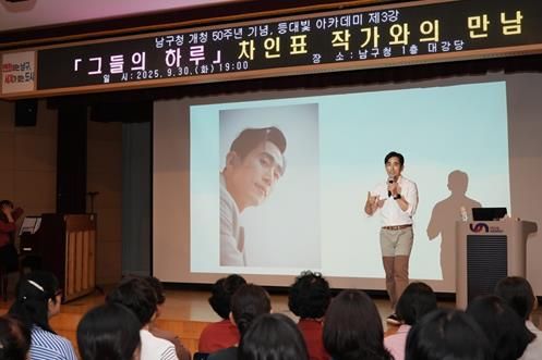 (포탈뉴스통신) 부산 남구는 지난 9월 30일 남구청 개청 50주년을 맞이해, 구청 1층 대강당에서 '제20기 등대빛 아카데미' 3강으로 배우 겸 작가 차인표 씨를 초청해 특별강연을 열었다.