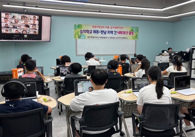 (포탈뉴스통신) 제주도교육청 하례초등학교는 9월 30일 전남 순천인안초등학교와 함께 비대면 화상회의 플랫폼(ZOOM)을 활용해 생태관광을 주제로 공동수업을 진행했다.