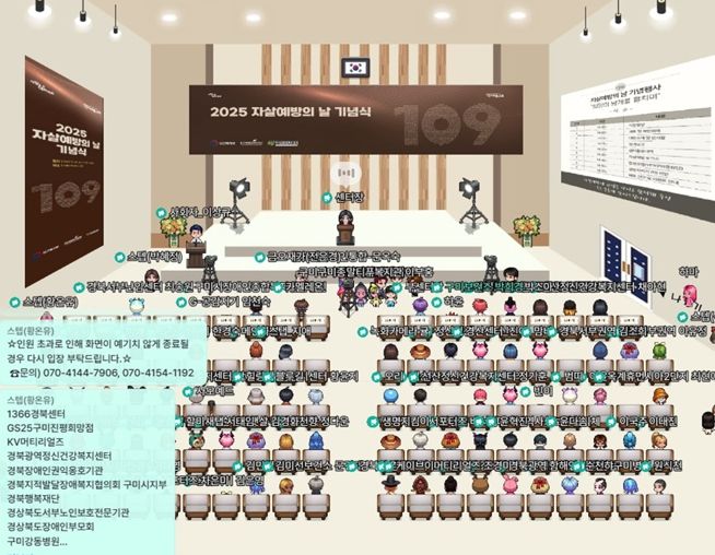 (포탈뉴스통신) 구미시는 정신건강과 자살예방의 중요성을 알리기 위해 지난 1일 메타버스 플랫폼(ZEP) ‘구미정신건강월드’에서 '제13회 자살예방의 날 기념행사-희망의 날개를 펼치며'를 개최했다.