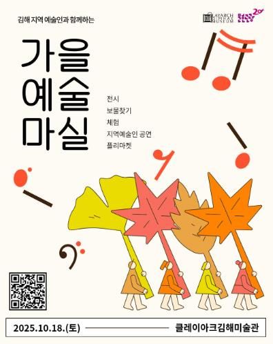 클레이아크김해미술관 관계자는 “이번 ‘가을예술마실’은 지역 예술인의 참여로 더욱 풍성해진 축제가 될 것”이라며 “시민들이 예술과 문화를 일상 속에서 가까이 경험하고, 나눔과 참여의 의미도 함께 느끼시길 바란다.”고 전했다.