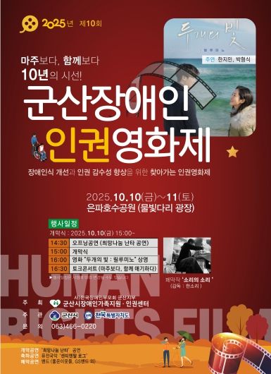 (포탈뉴스통신) 군산시 장애인가족지원인권센터가 10월 10일부터 11일까지 은파호수공원 물빛다리 광장에서 군산시민을 대상으로 장애인 인식개선 및 인권의식 함양을 위한 2025년 제10회 군산장애인인권영화제를 개최한다.