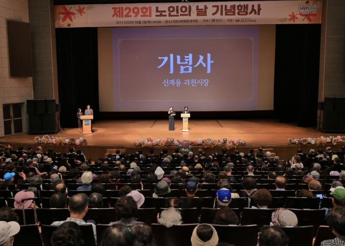 (포탈뉴스통신) 과천시는 2일 시민회관 대극장에서 ‘제29회 노인의 날 기념식’을 열었다. 시가 주최하고 과천시노인복지관이 주관한 가운데 열린 이날 행사에는 지역 어르신 1천1백여 명이 참석했다.