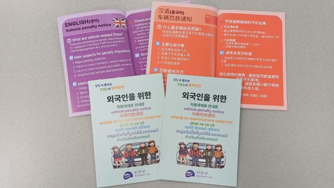 이번에 제작된 안내문에는 △주정차위반 △자동차 검사 지연 △의무보험 미가입 등 차량 관련 과태료에 대한 설명과 납부 방법, 체납 시 불이익 등에 대해 영어·중국어·러시아어·베트남어·네팔어·캄보디아어·태국어로 안내돼 있다.