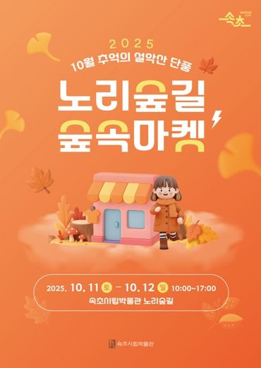 (포탈뉴스통신) 속초시립박물관이 2025년 10월 11일부터 12일까지 오전 10시부터 오후 5시까지 박물관과 노리숲길 일원에서 ‘2025년 10월 노리숲길 숲속마켓’을 연다. 입장료는 무료다.